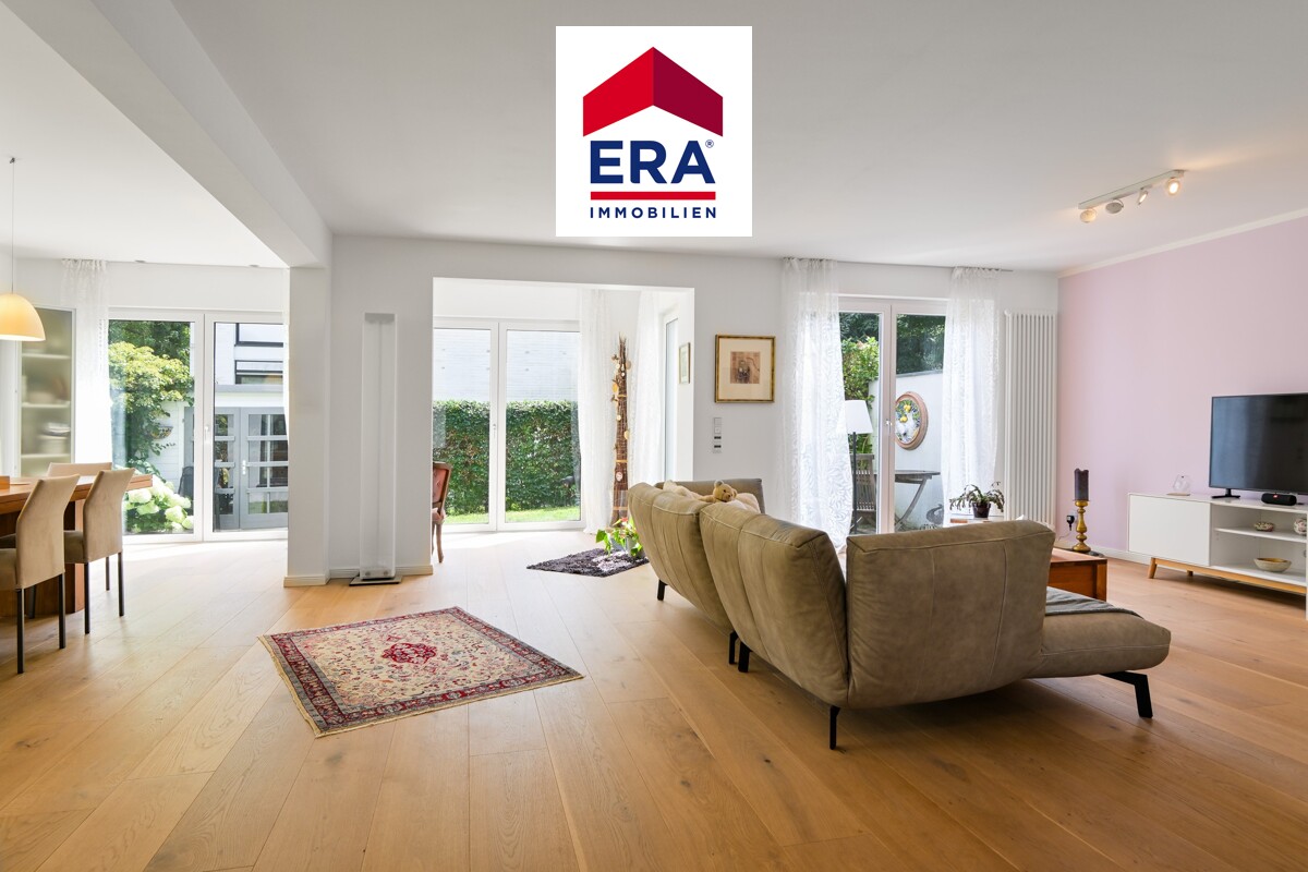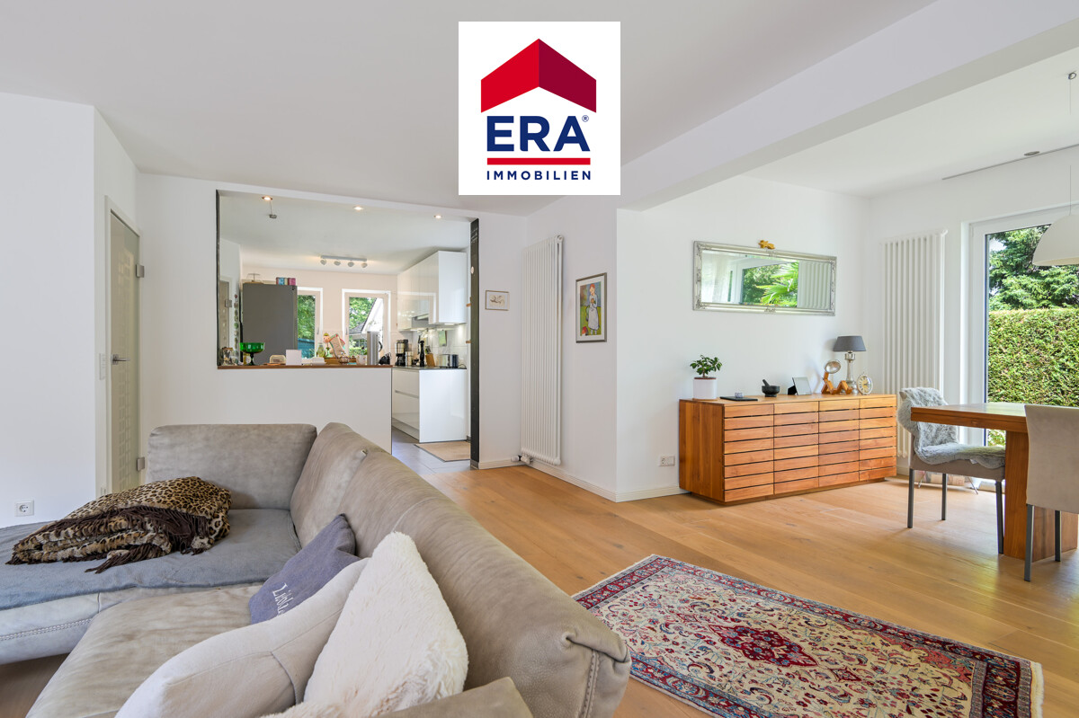 Beim Betreten dieser exquisiten Doppelhaushälfte werden Sie sofort von der hellen und einladenden Atmosphäre begrüßt. Der Eingangsbereich führt Sie direkt in den großzügigen Wohn- und Essbereich, der durch seine moderne Gestaltung und die großen Fensterfronten besticht. Diese sorgen für ein angenehmes Tageslicht und bieten einen herrlichen Blick in den gepflegten Garten.