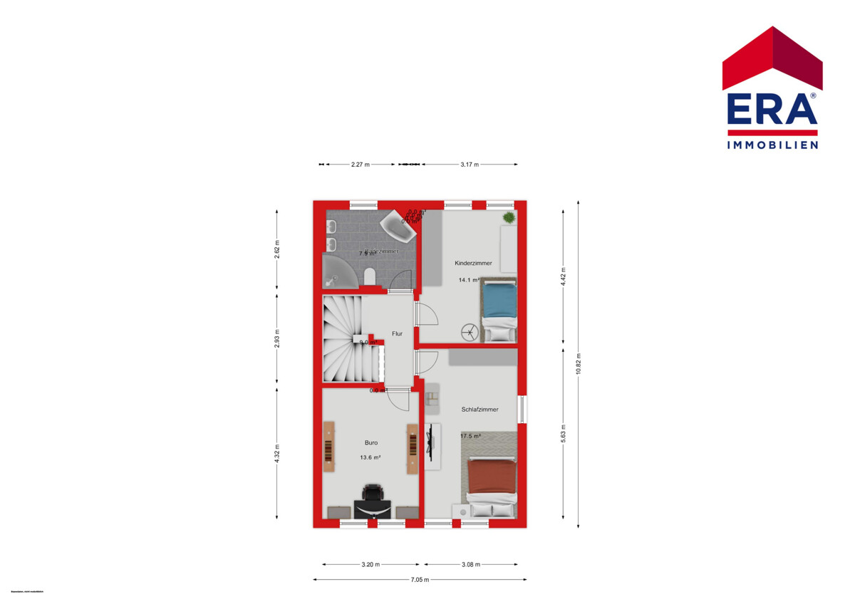 Im Obergeschoss erwarten Sie drei geräumige Schlafzimmer, die ebenfalls durch ihre Helligkeit und den durchdachten Schnitt überzeugen. Nach einem langen Tag verspricht das moderne Badezimmer mit seiner Badewanne entspannende Momente.
