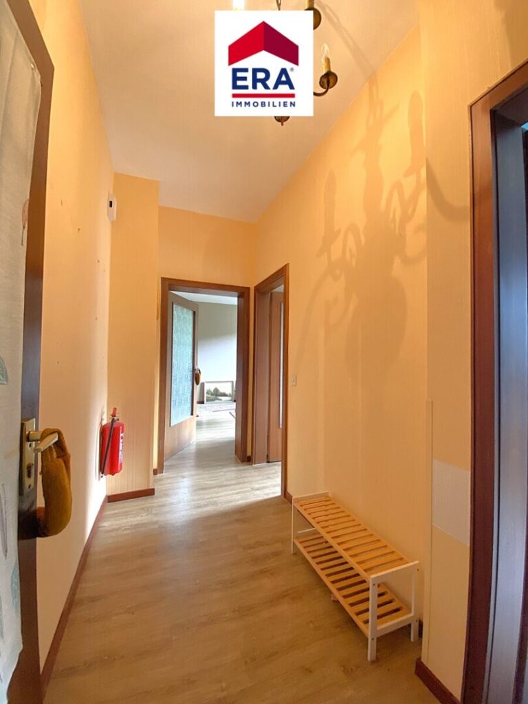 Über einen Treppenaufgang erreichen Sie durch den Flur die ebenerdige Wohnung, hier befinden sich der helle Wohn-, Essbereich, ein Schlafzimmer und eine weitere Räumlichkeit, die Küche verfügt über einen Zugang zum Balkon mit Blick ins Grüne, das Badezimmer wurde mit einer barrierefreien Dusche, Waschbecken und WC ausgestattet, im Flur befindet sich zusätzlich ein Einbauschrank.