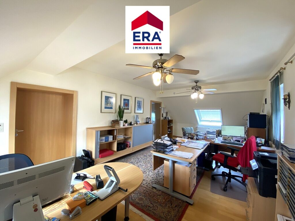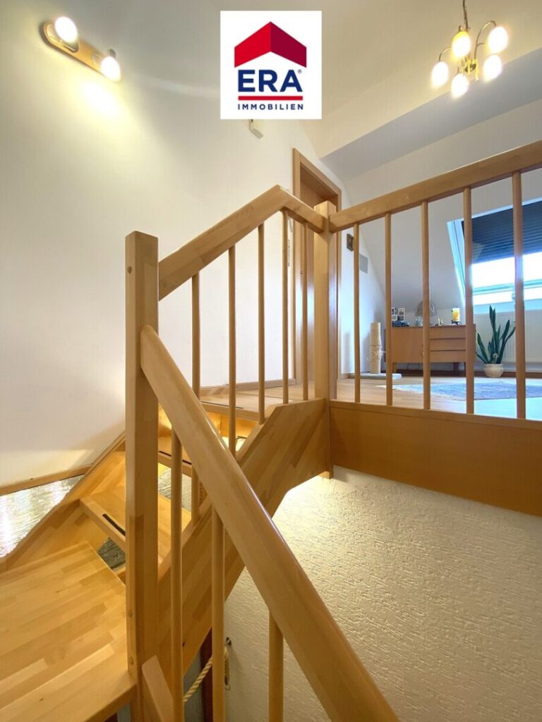 Im Dachgeschoss erreichen Sie die Maisonette-Wohnung, diese verfügt linksseitig über einen großzügigen Abstellbereich und rechtsseitig über einen hellen Bürobereich (oder Schlafzimmer), des weiteren finden Sie hier ein zweites Badezimmer mit Dusche, Waschbecken und WC.
