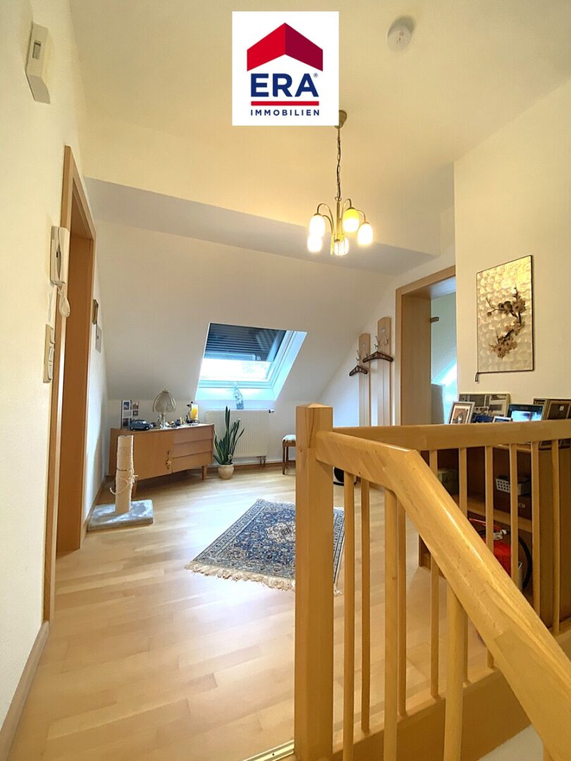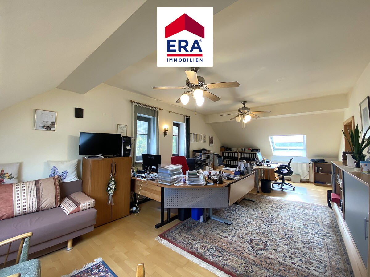 Im Dachgeschoss erreichen Sie die Maisonette-Wohnung, diese verfügt linksseitig über einen großzügigen Abstellbereich und rechtsseitig über einen hellen Bürobereich (oder Schlafzimmer), des weiteren finden Sie hier ein zweites Badezimmer mit Dusche, Waschbecken und WC.